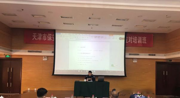 上午9:30,培训正式开始,首先是天津市公安局保安业监管处俞江副处长主讲《企业提升发展及保安市场的应对》。俞江副处长为与会人员讲解了天津市保安服务业现状以及我市保安服务行业存在的十大问题:一、公司数量激增,市场竞争愈发激烈;二、外埠公司涌入,市场份额受到侵占;三、经济形势下滑,保安市场缩水严重;四、税费改革实行,公司负担日趋严重;五、低价竞争严峻,企业运营进退两难;六、服务方式单一、企业发展动力不足;七、管理手段缺乏,保安服务参差不齐;八、技能培训不足,保安素质需要加强;九、保安流动性大,队伍稳定难题待解;十、保安来源不一,整体形象有待提高。根据我市保安服务行业存在的以上问题,俞江副处长给予了应对措施,指明了保安服务行业发展的方向:一是,依法依规开展保安服务经营活动;二是,拓宽保安服务渠道从单一人力向科技转换;三是,保安服务企业要立足本市迈向全国走向海外;四是,保安服务企业要依法经营内强素质外树形象。并要求各保安服务企业要做到:严格遵守国家有关保安监管、劳动就业、税收、社会保险、政府采购、招投标等法律法规,坚决依法依规开展保安服务活动;确保在国家规定的经营范围内开展保安服务活动;严格遵循保安员全员持证上岗,特殊技能岗位工作的保安员必须经专业培训持证上岗;加强对各级管理岗位以及全体保安员的教育、管理和培训,提升管理能力和服务水平,用优质服务占领市场;不断加强器材、装备、服装以及科技等方面的投入,用良好的形象展示新时代保安服务行业的形象。
